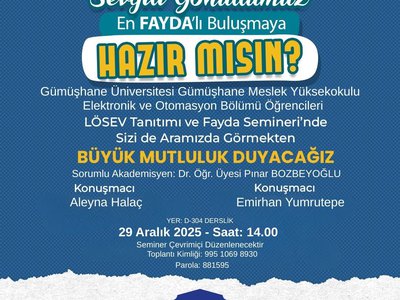 Seminer kapsamında; LÖSEV’in yürüttüğü çalışmalar, gönüllülük faaliyetleri ve toplumsal fayda odaklı projeler hakkında bilgilendirme yapılacak olup öğrencilerimizin sosyal sorumluluk bilinci ve gönüllülük kültürü konusunda farkındalık kazanmaları amaçlanmaktaktadır.